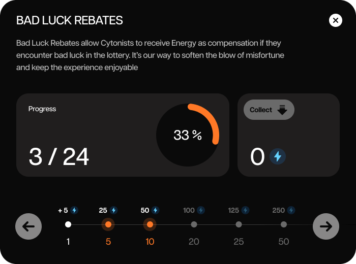 For all additional reward distributions, achievements are utilized. Achievements reward users with energy, which can be claimed and spent.